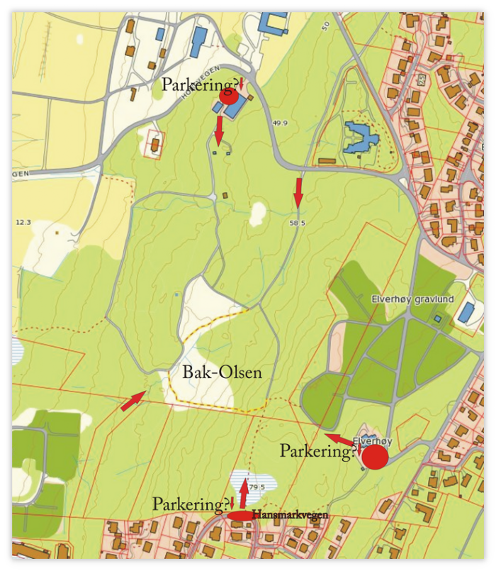 Kartet nedenfor viser mulig parkering/levering og adkomstveier..